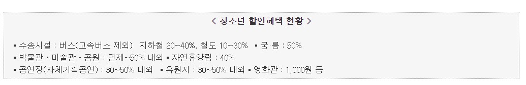 √ 청소년증은 버스, 지하철, 철도 , 박물관, 미술관, 공원, 공연장, 유원지. 영화관 , 교보문고, 핫트랙스 등 할인 혜택