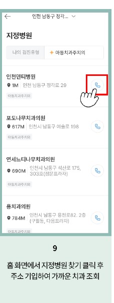 덴티아이는 어플을 통해서 미리 아이 등록과 치과도 가깝게 지정할 수 있습니다.